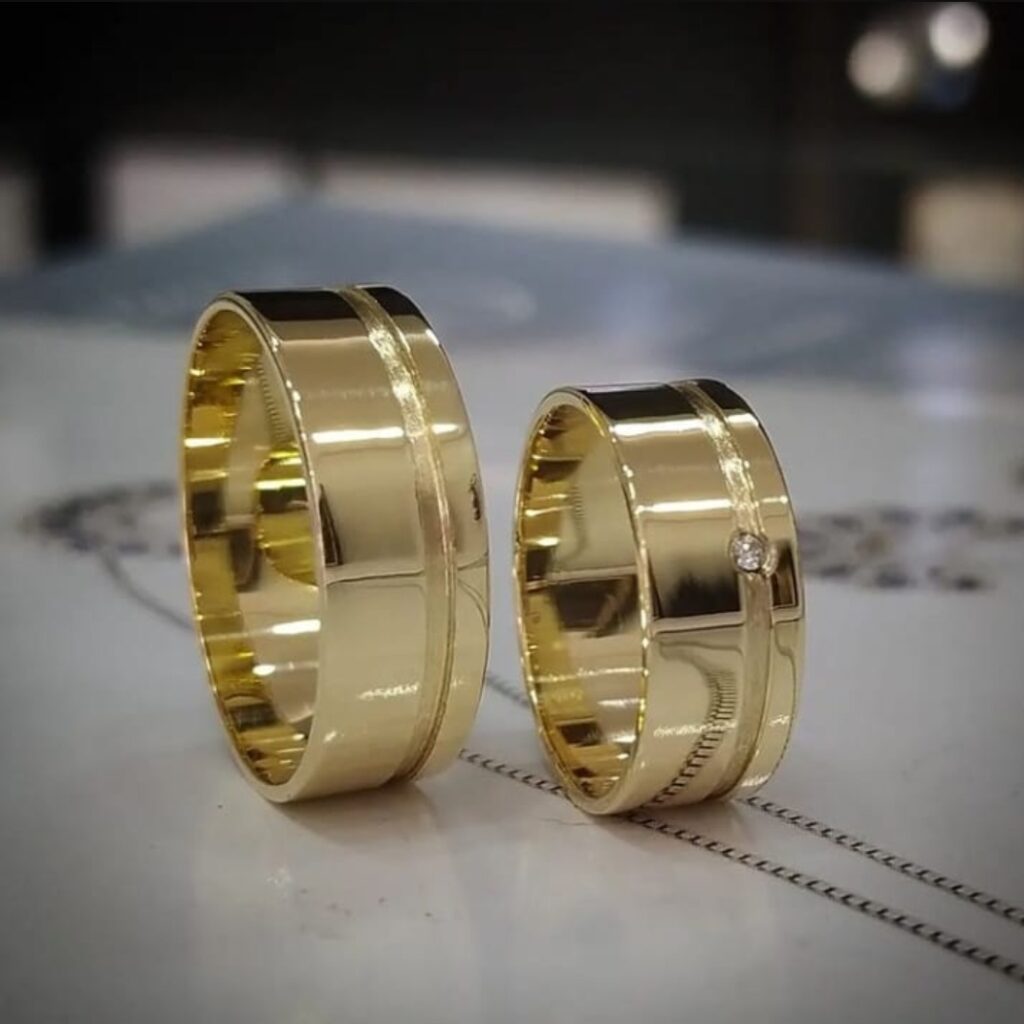 Par de alianças de prata 7mm (modelo c/ acabamento fosco e friso central banhado) R$ 399.00
