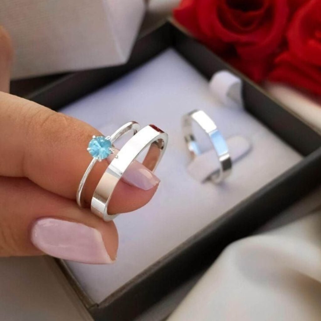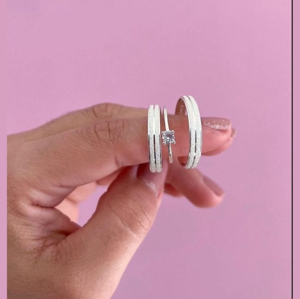 Par de alianças 4mm + anel solitário. (prata legitima 950) R$ 239,00